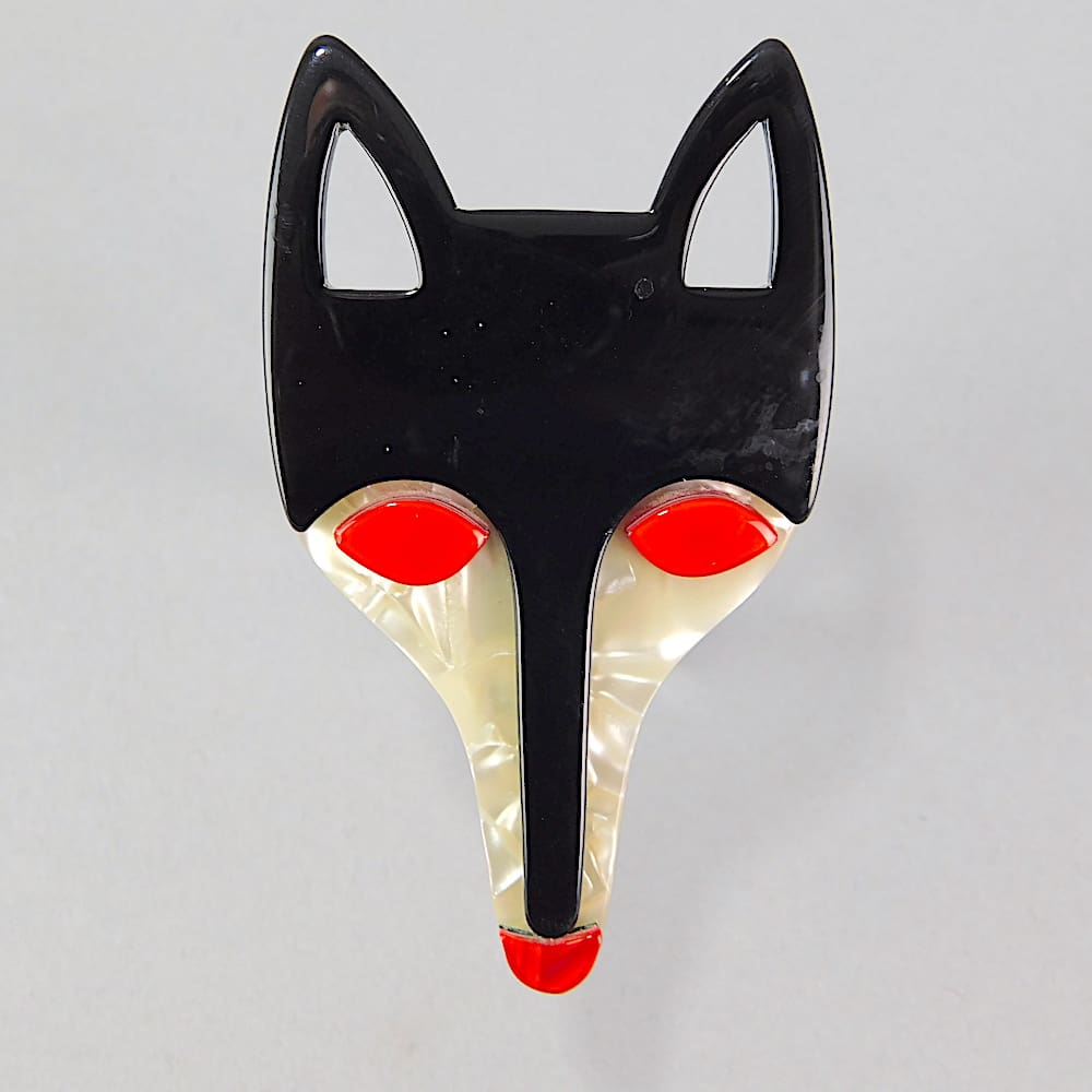 Rare first edition fox head by Lea Stein. Signed on the safety clasp.