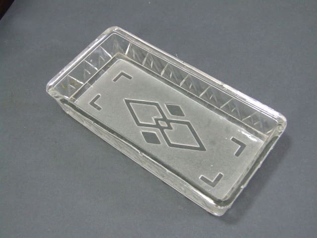 Condition is good but there is some foxing the the mirror glass bottom on the tray.