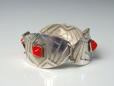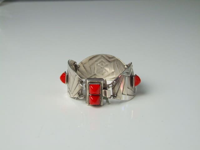 French silver plated metal and red onyx bracelet.