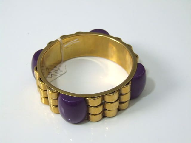 gilt metal and purple galalith bangle.