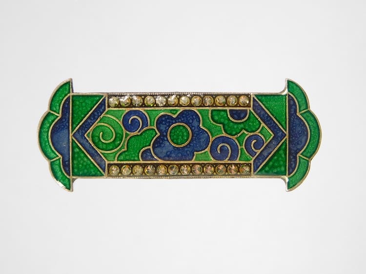 Large enamel floral brooch by Pierre Bex. Fitted with a signed slide safety clasp.