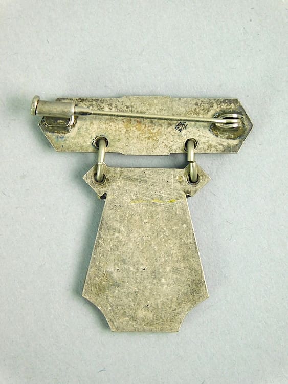 French art deco enamel and diamonte dangle brooch by Pierre Bex of Paris. Fitted with a roll safety clasp.