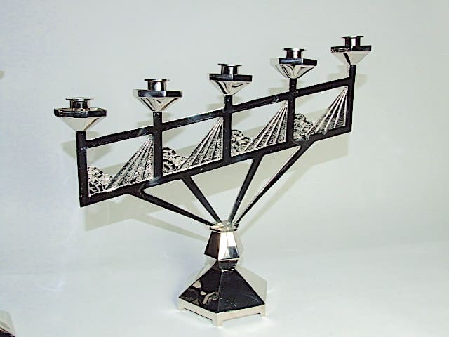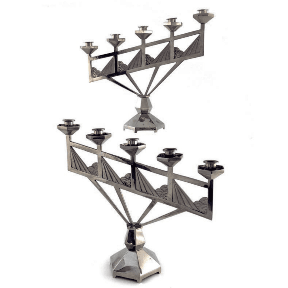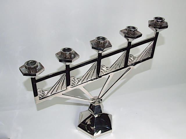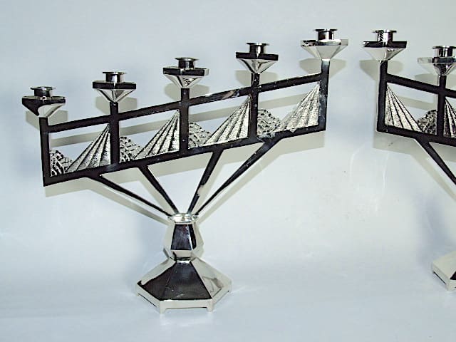 A pair of huge French nickel plated/silvered bronze candle sticks, each holds five candles, possibly Jewish Shabbat style?