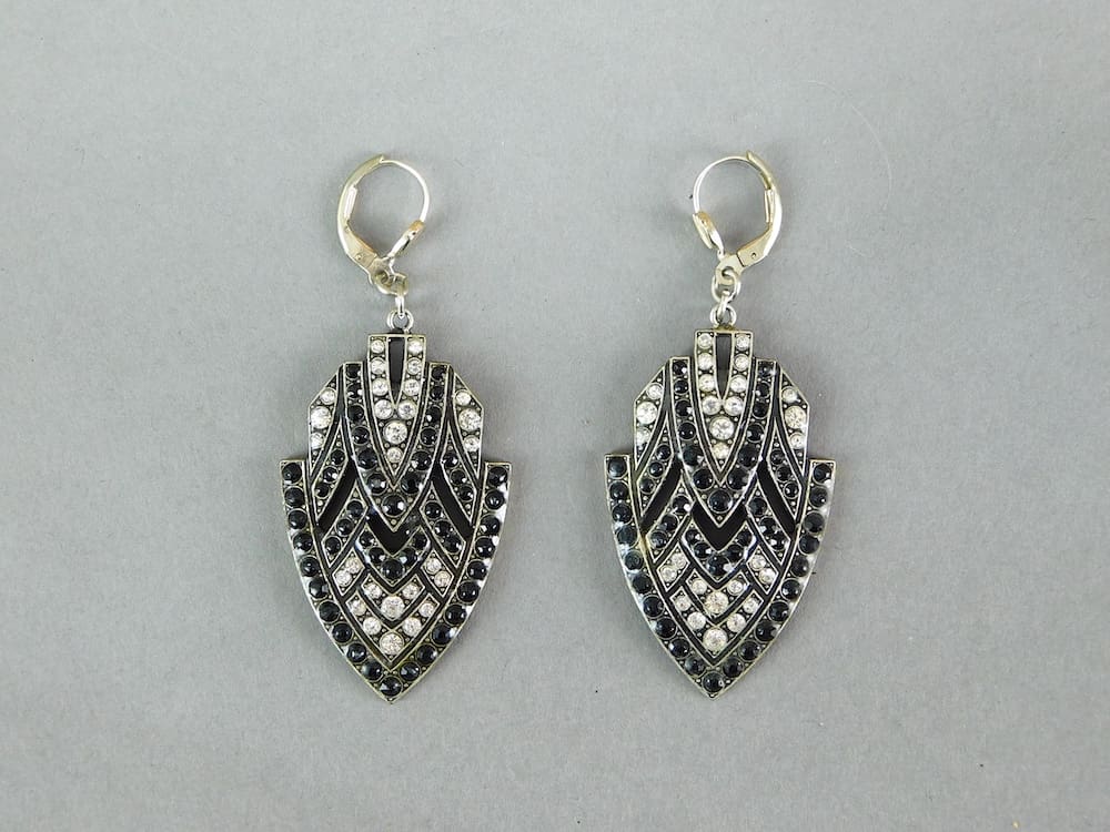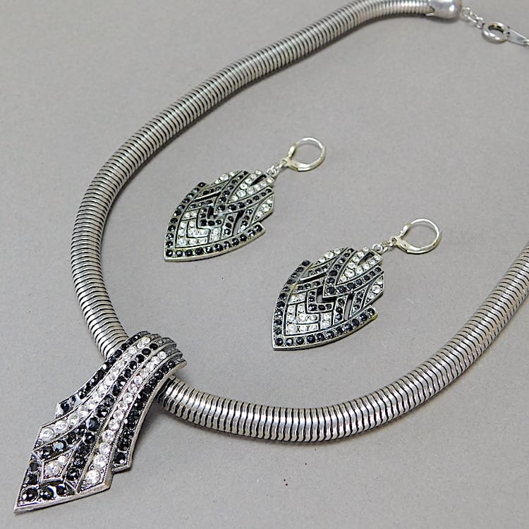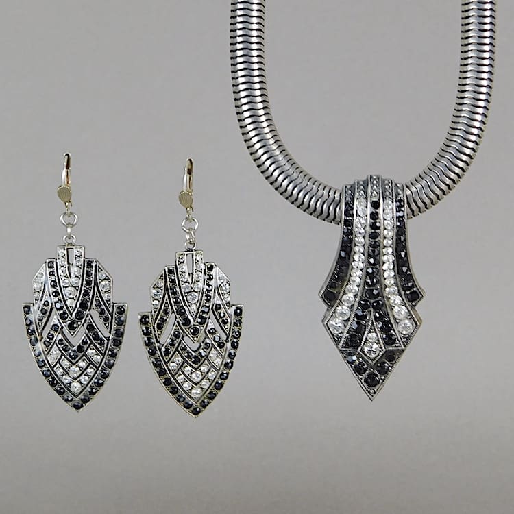 French art deco strass diamonte earrings and necklace set. Made by Pierre Bex in Paris.