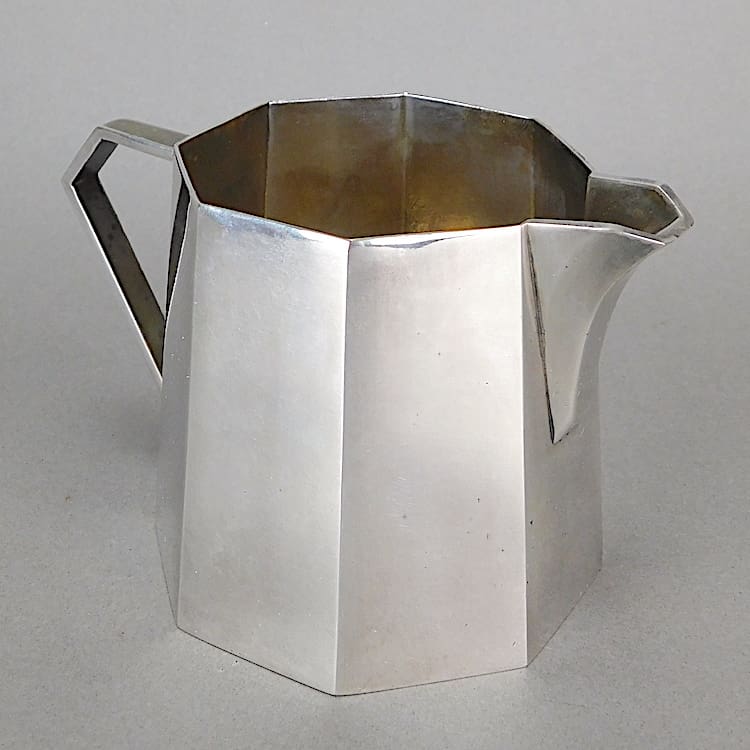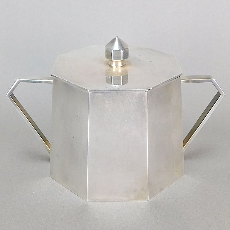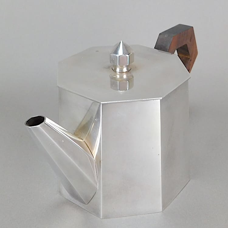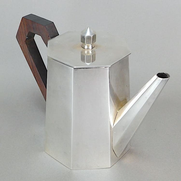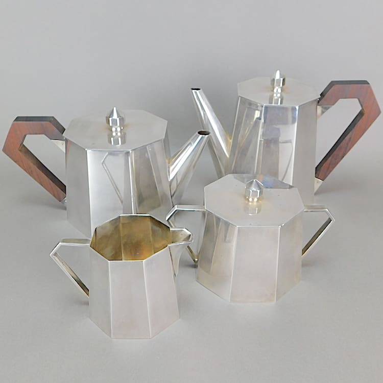 French five piece metal art deco tea set with macassar handles.