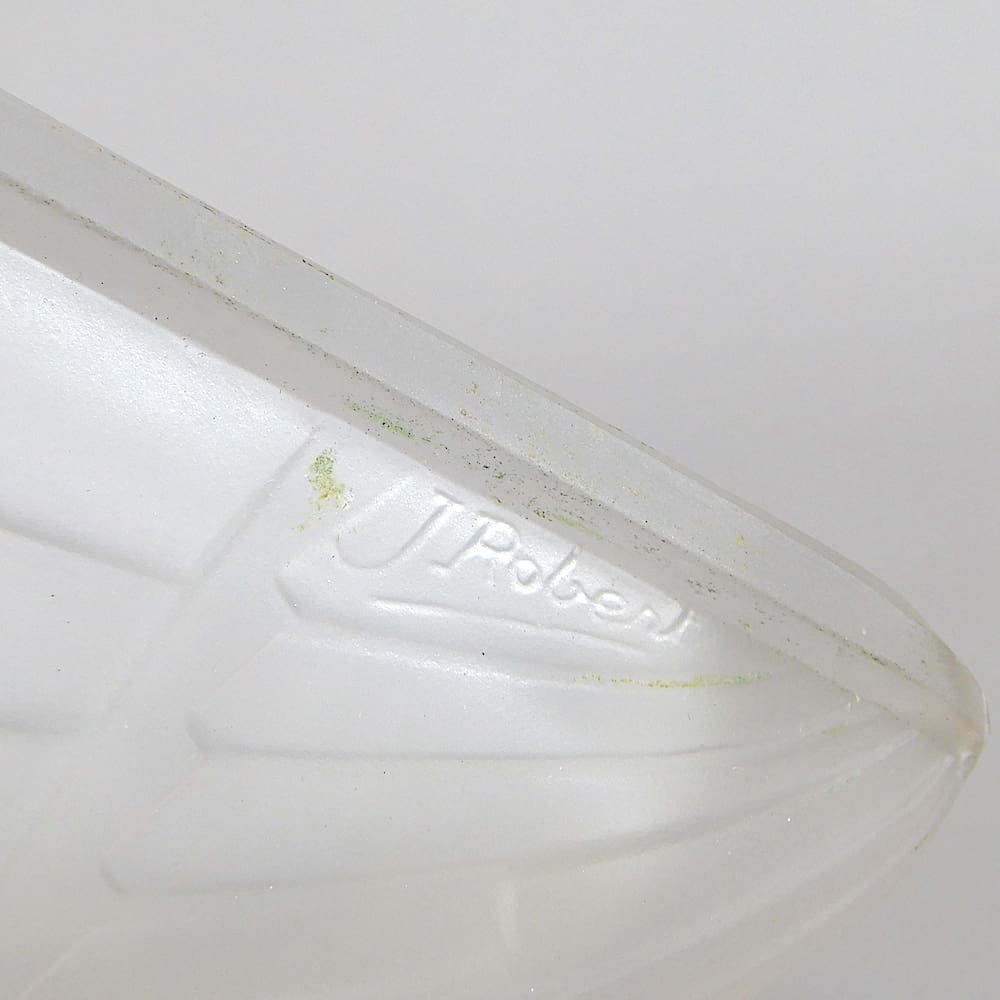 Polished copper framed wall lights with frosted moulded glass shades – signed Robert. We know from previous lights signed Robert that they are made in Paris.
