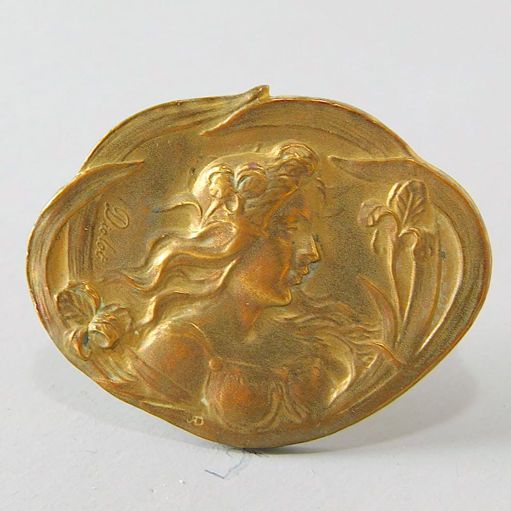 French Art Nouveau bronze brooch by Dielet c.1910.