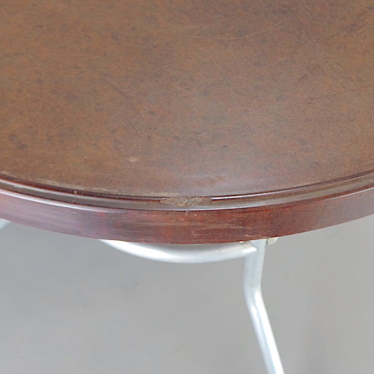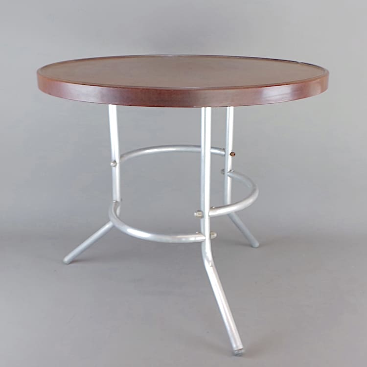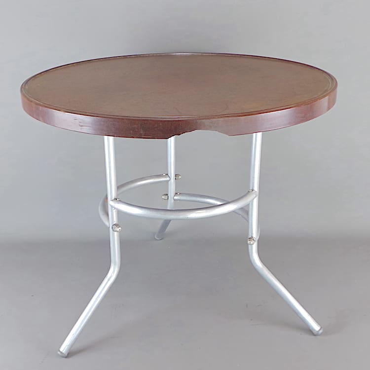 A French cafe breakfast or coffee table, made with spun aluminium legs and a bakelite top.