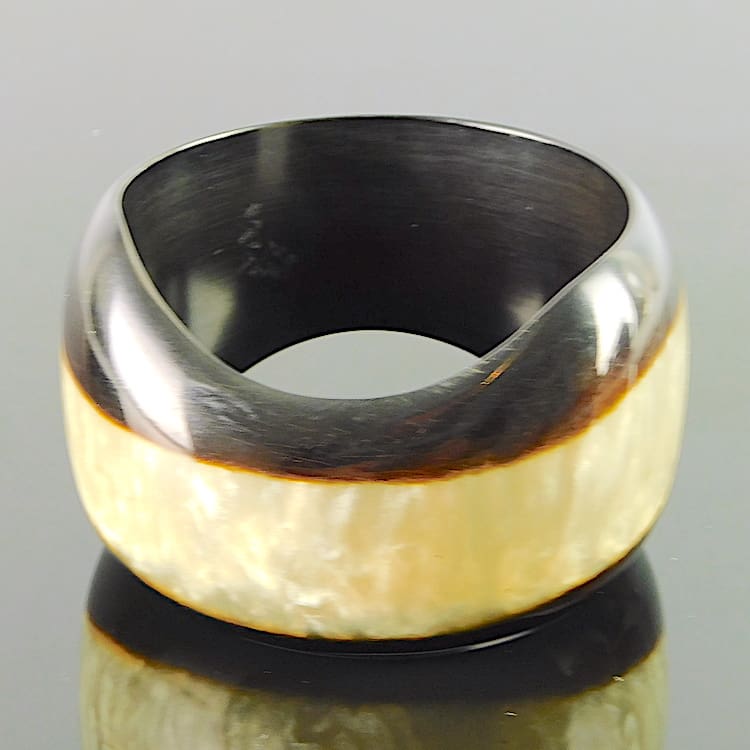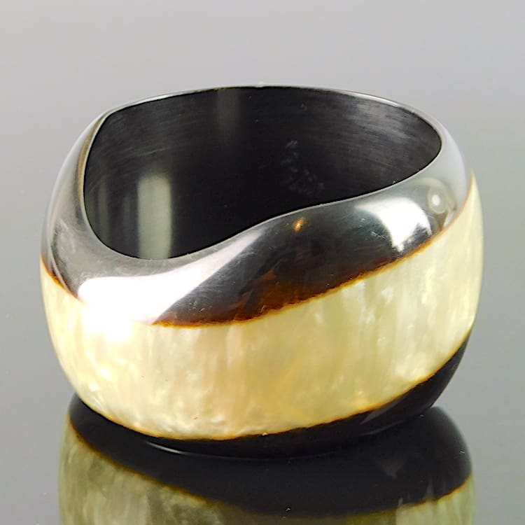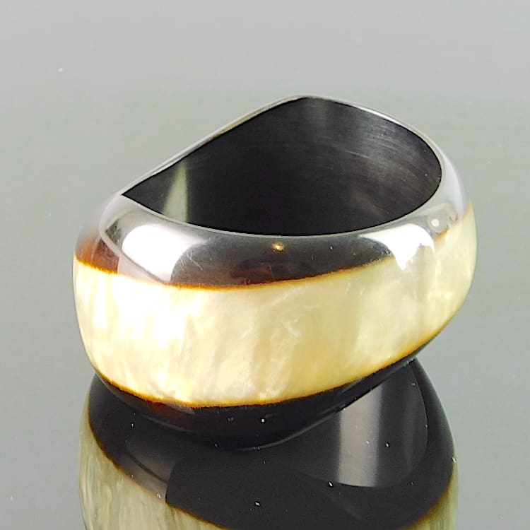 Two tone brown and silver phenolic bangle, made in France.