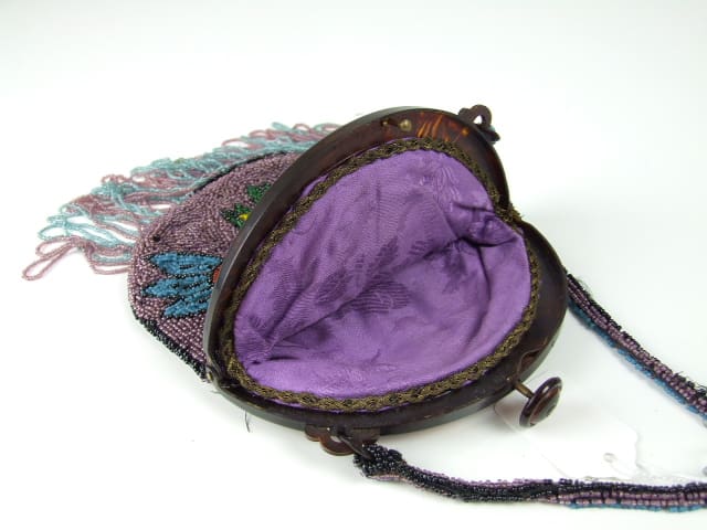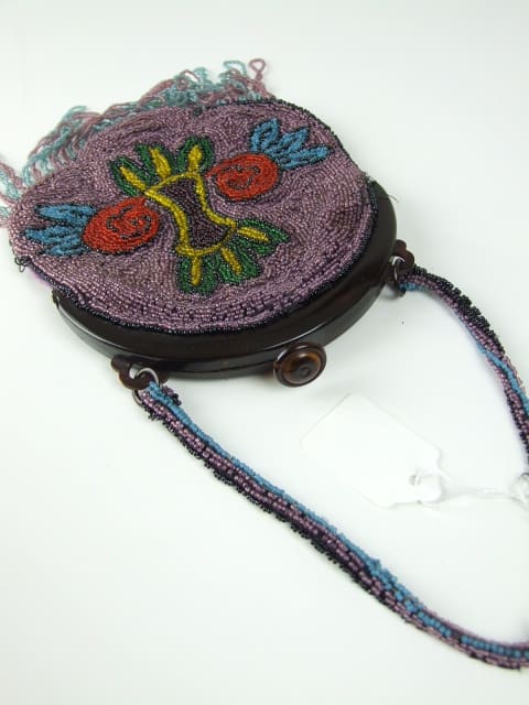 Purple beaded flapper dance bag with phenolic top marked to the inside – France.