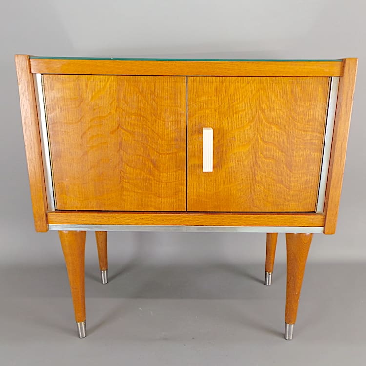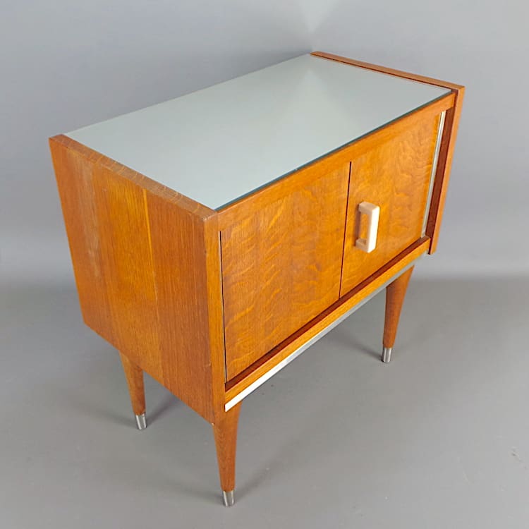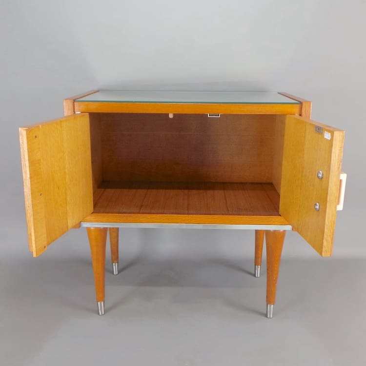Each with a cream phenolic handle, metal side strips and matching metal feet caps.