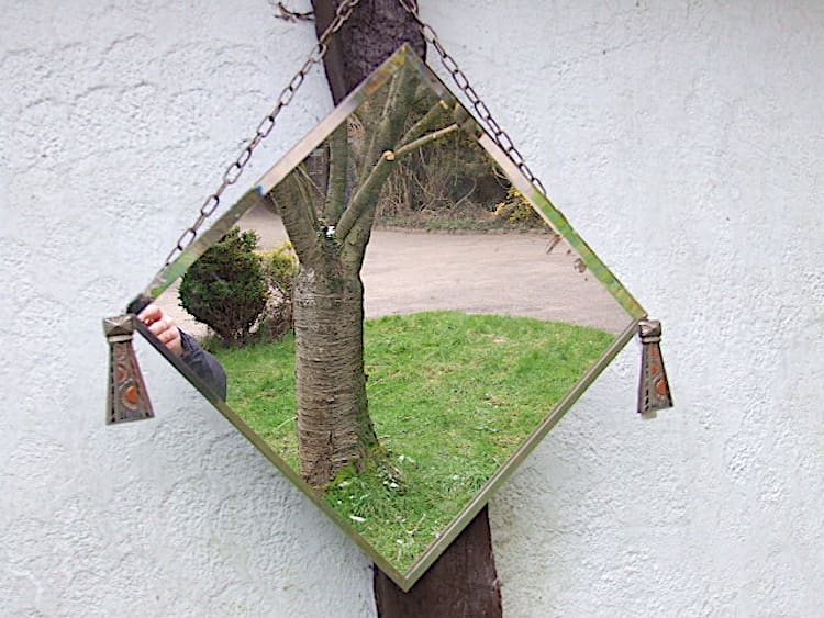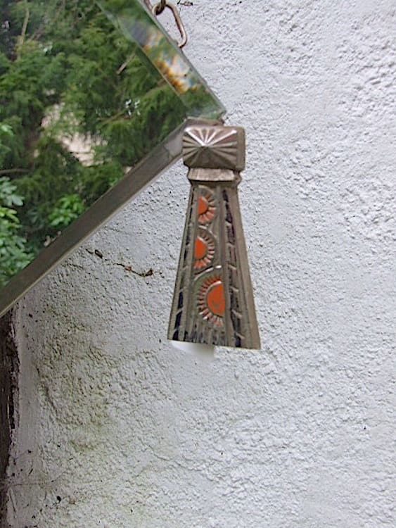 Silvered bronze surround with bronze tassel detailing and orange enamelling.