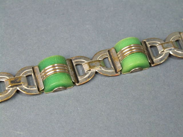 1920’s French phenolic and silver leaf brooch. Fitted with a roll safety clasp.