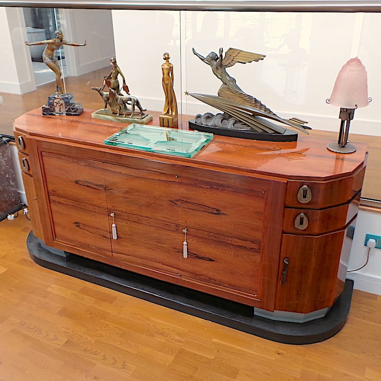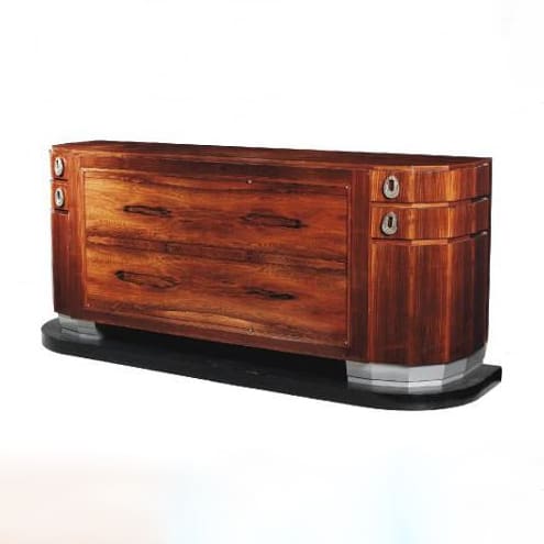 A fabulous French art deco solid Rio Palisander (Brazilian Rosewood) buffet by Christian Krass of Lyon, (1868 – 1957), onetime apprentice of Emile-Jacques Ruhlmann.
