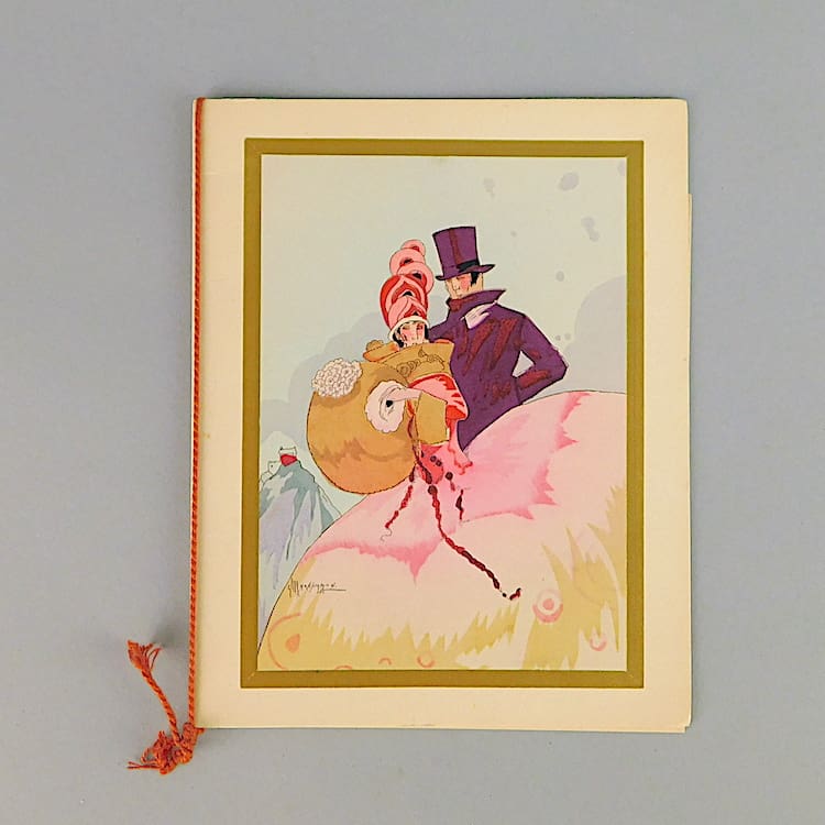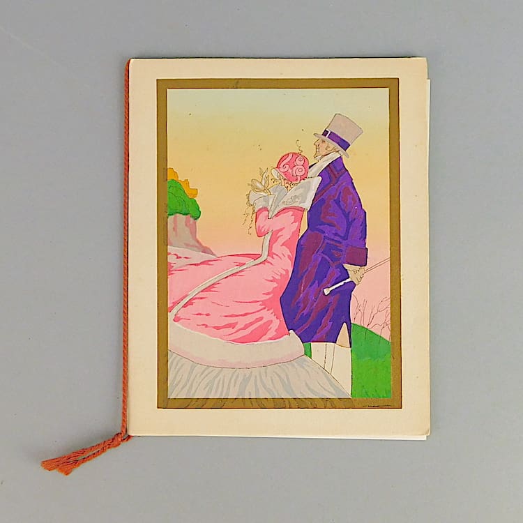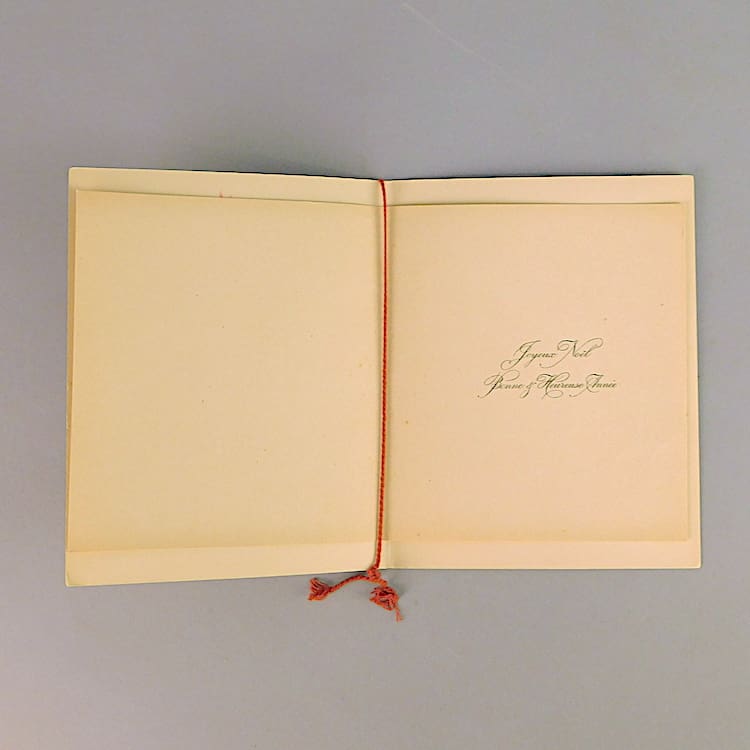 A pair of very pretty 1920s French Christmas cards, each a water colour and signed, although indistinctly. They each have gilt border and although currently unframed.