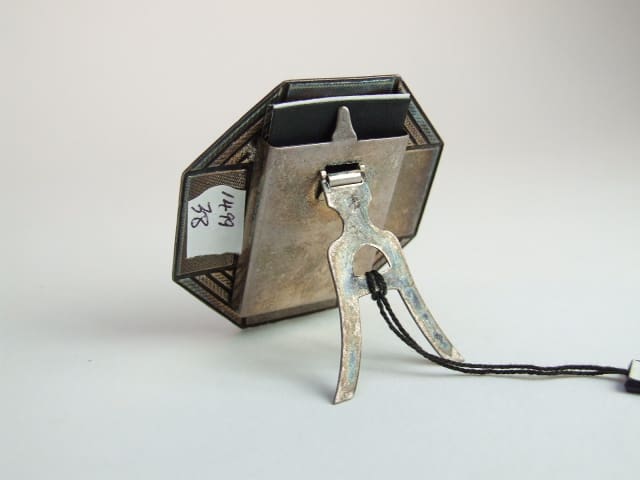 Two tone purple and cream enamel octagonal photo frame made by Pierre Bex of Paris.