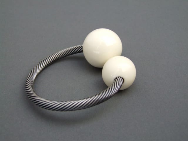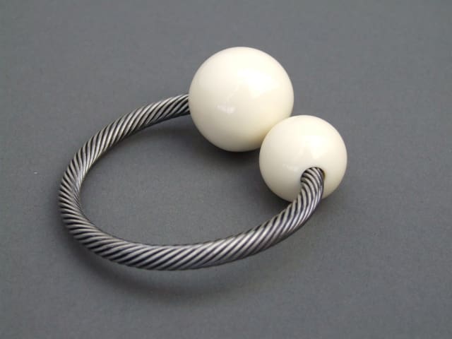 The largest ball measures 1.25 (3cm) wide. It will fit any size of wrist as it can be squeezed tighter or stretched larger.