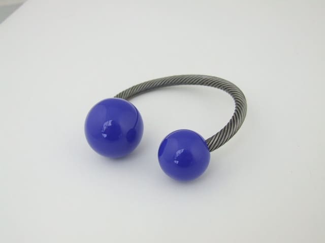 Modern galalith ball and steel rope bangle bracelet.