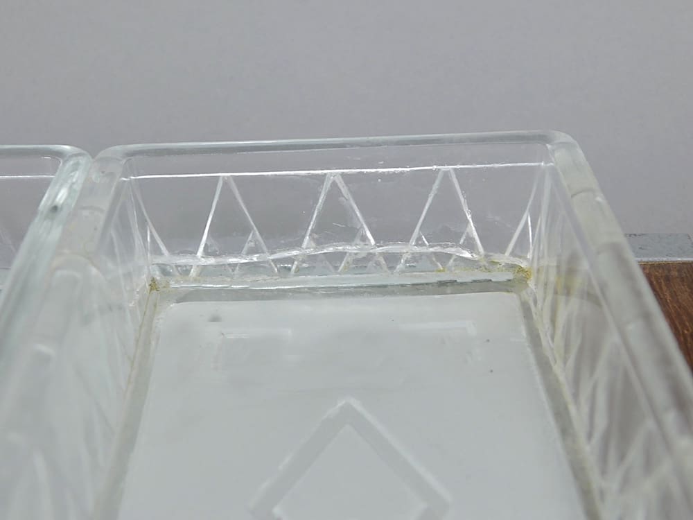 Condition is generally good but with some traces of glue and a crack to the edge of one dish, hence £80.