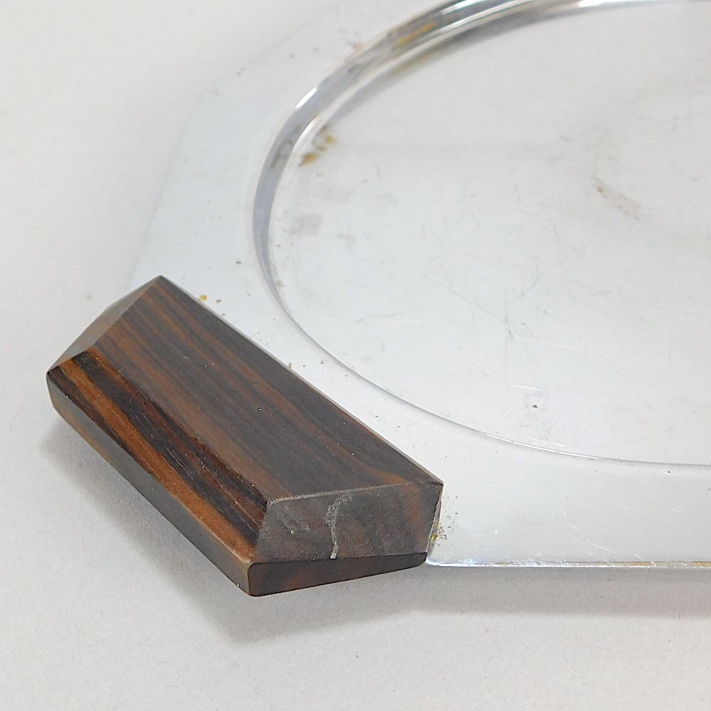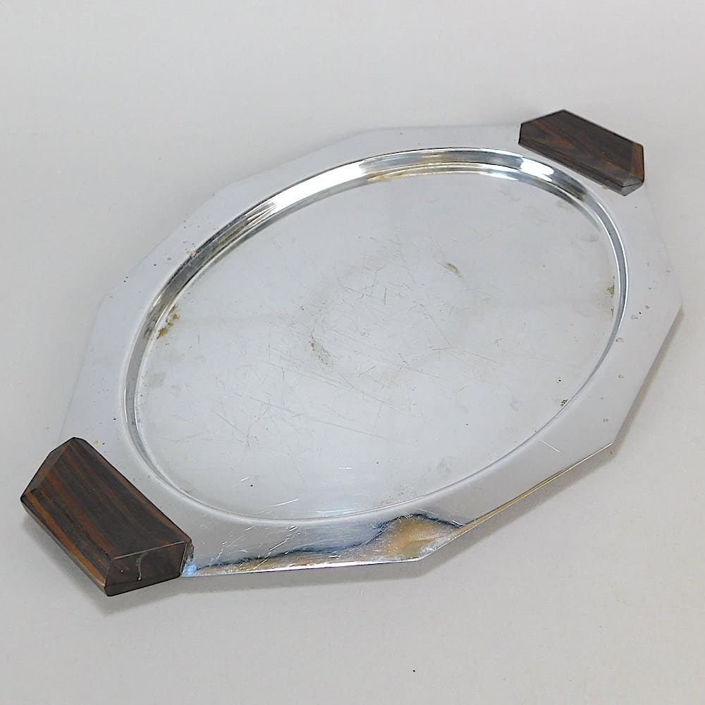 A quality French chromed metal tray with macassar ebony handles.