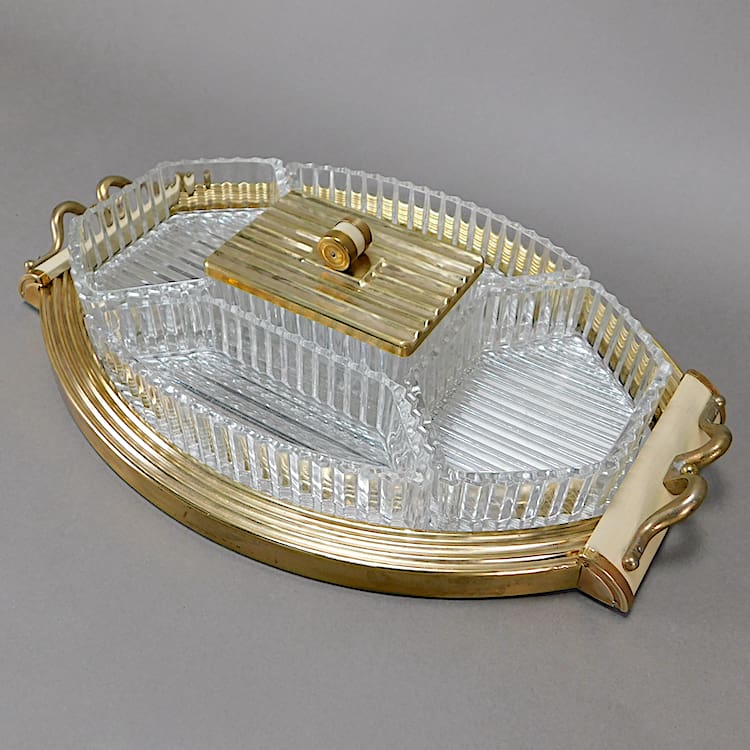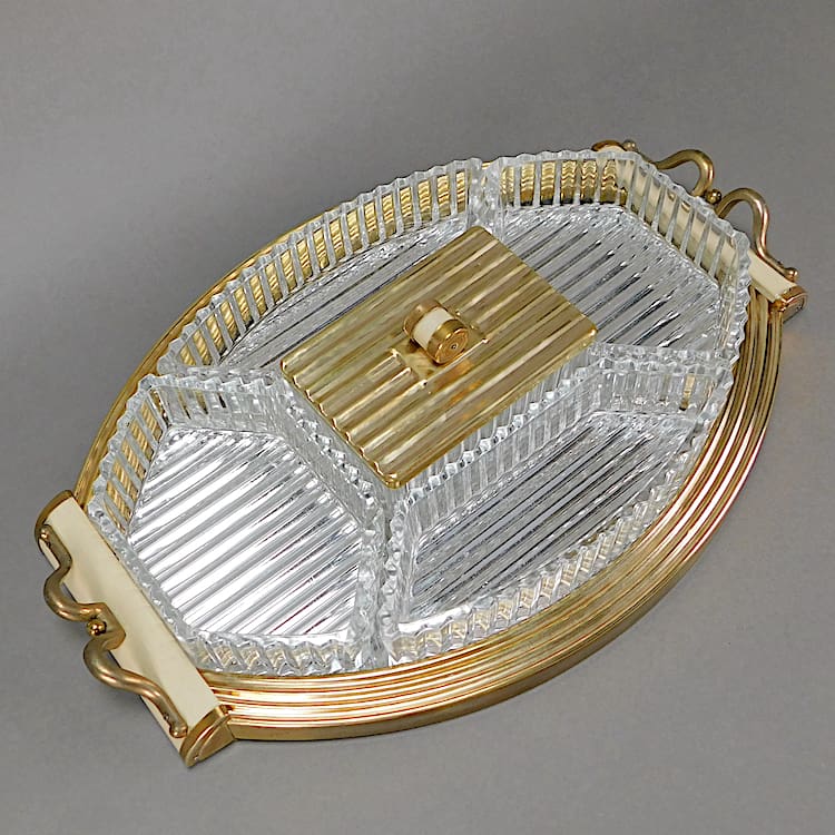 Five internal ribbed glass sectional dishes – the centre one with a lid.
