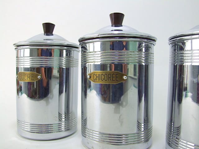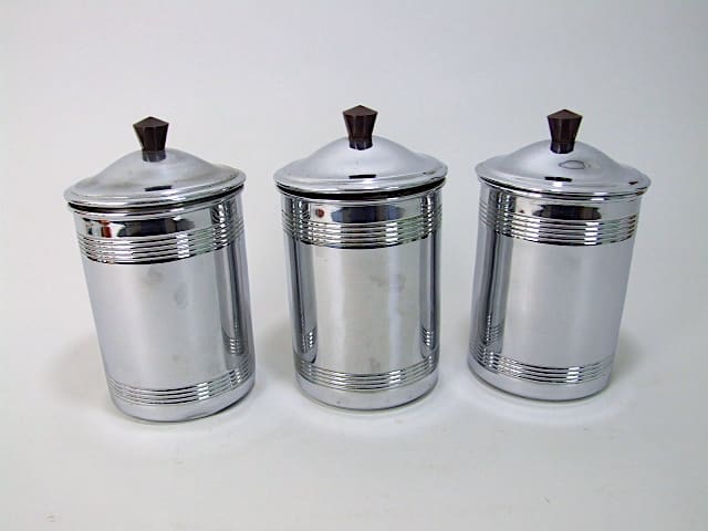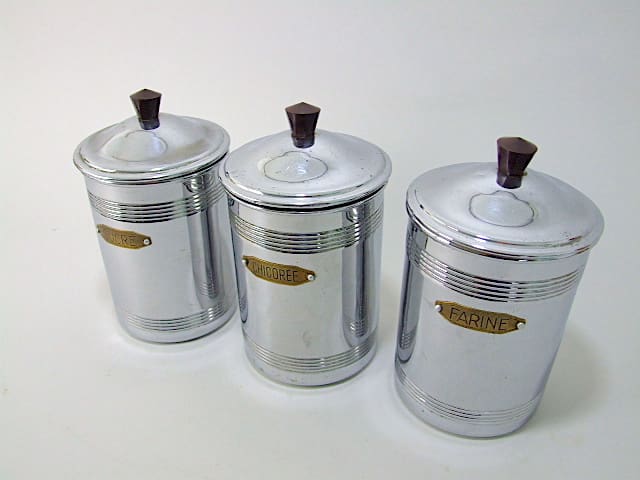 French 3 piece canisters set with bakelite handles.