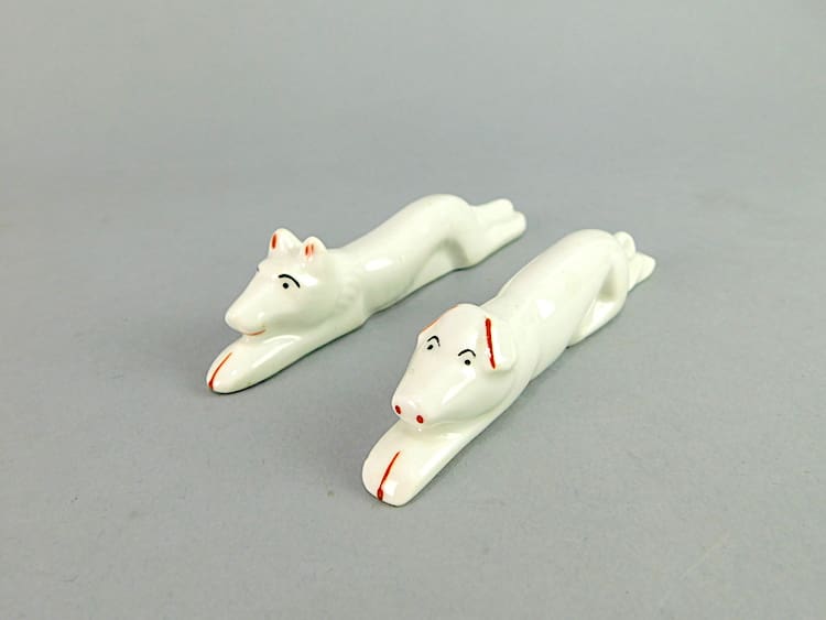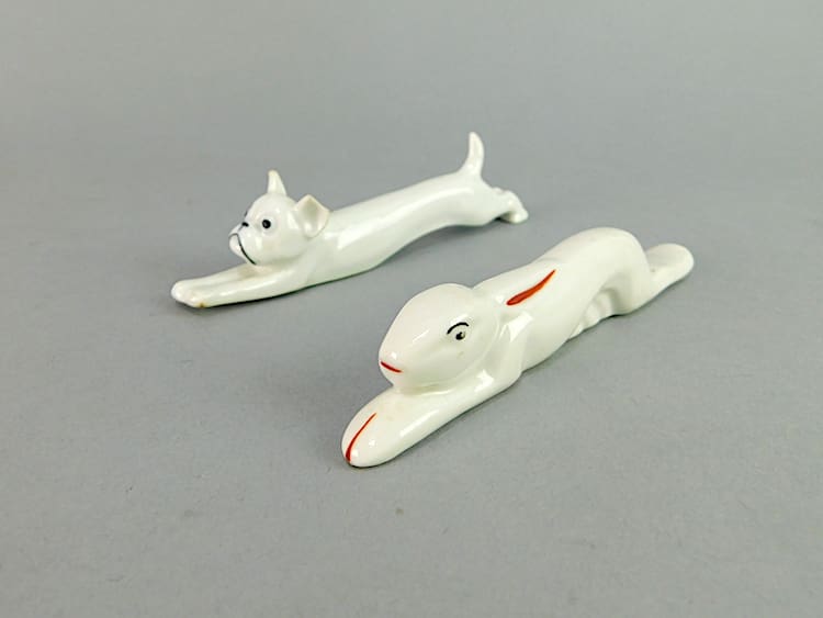 A set of art deco ceramic, hunting theme knife rests.