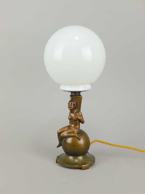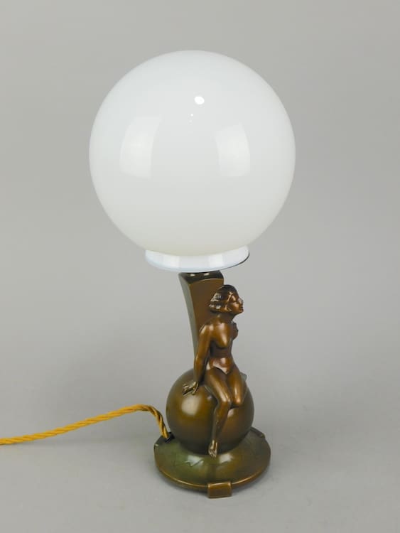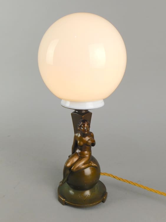 A bronzed patinated spelter table lamp with a nude girl to the front.