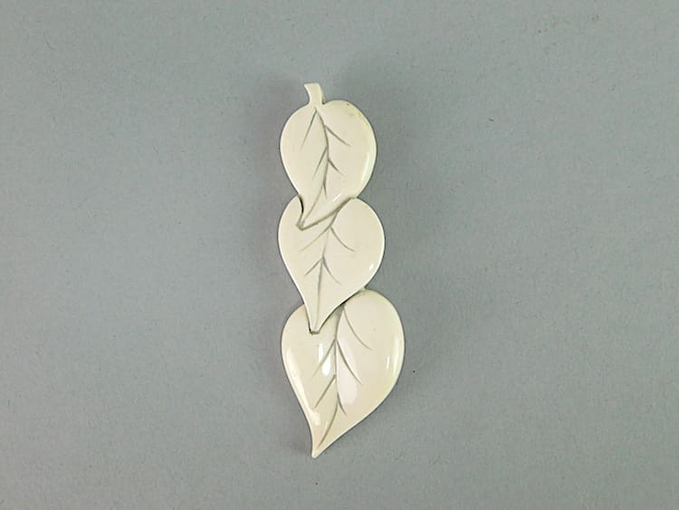 Phenolic art deco leaf brooch, made in the 1930s.