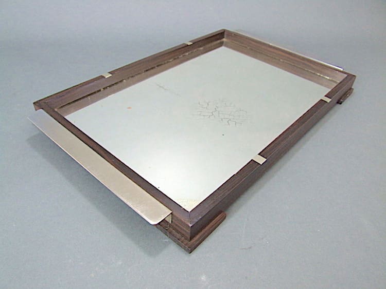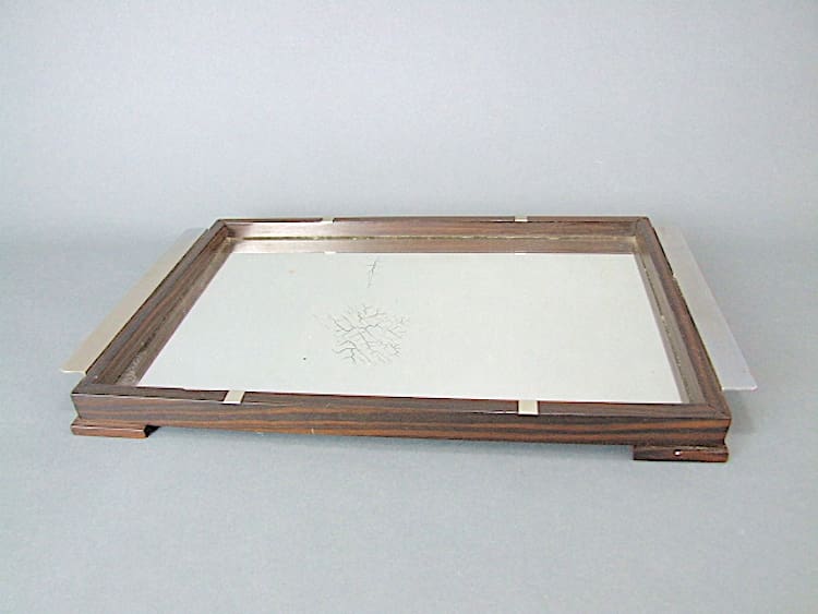 Nice quality French tray in silvered bronze and macassar ebony with a mirror base.