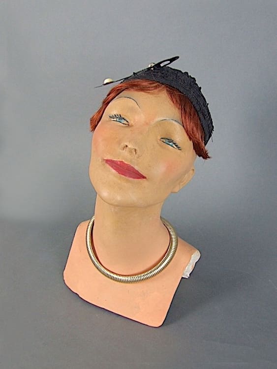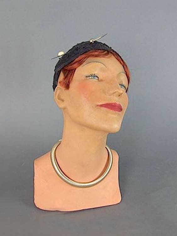 1920s French plaster mannequin bust. Hand painted French art deco mannequin bust. Made of plaster. Wig, hat and Jewellery not included in sale price.