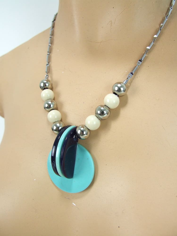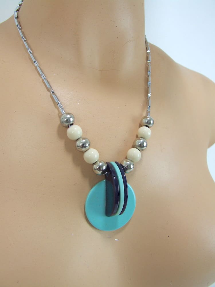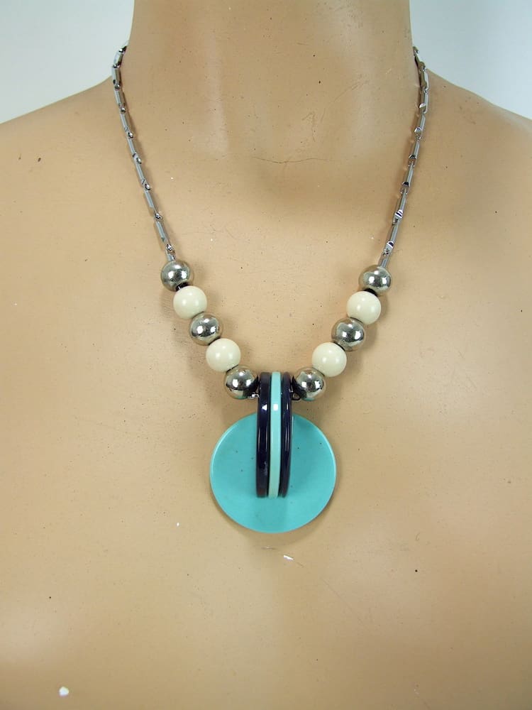 Black and turquoise French vintage galalith art deco necklace.