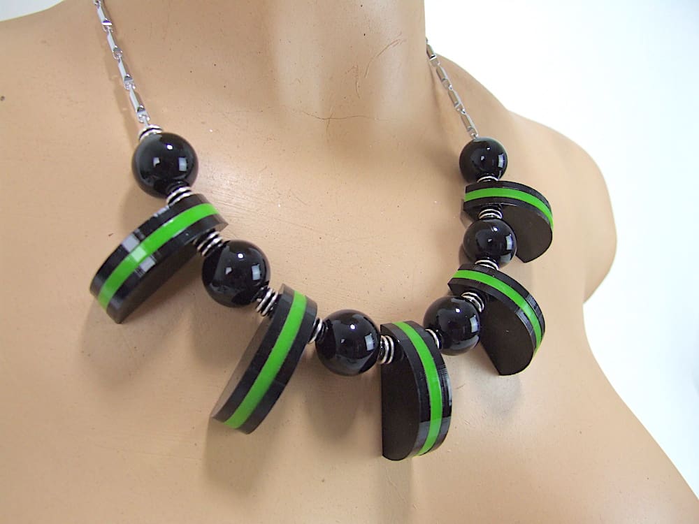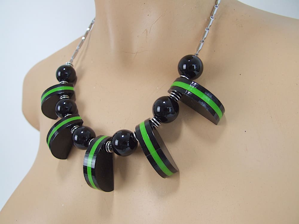 French black and green vintage galalith art deco necklace.