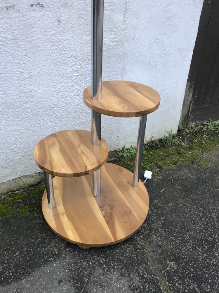 French art deco walnut asymmetrical modernist table with chrome tube detail. Fitted with foot switch.