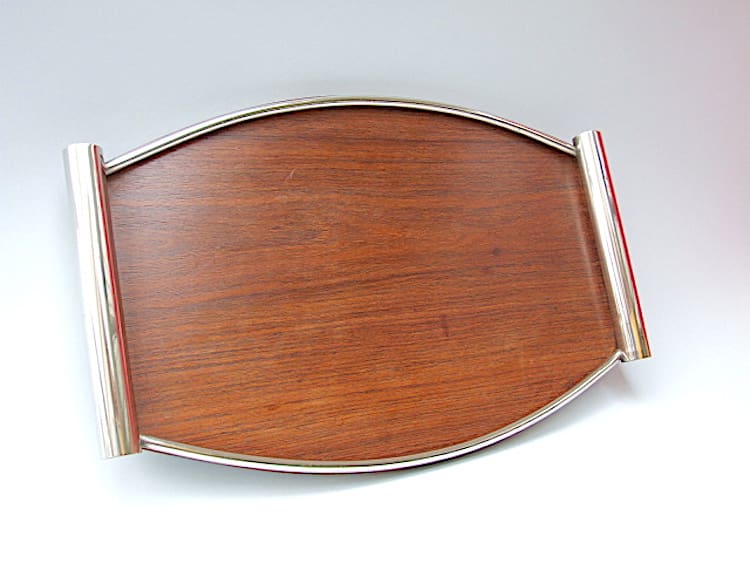 Wonderful French wood and chrome modernist tray.