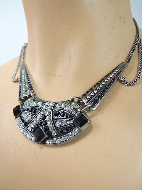 Pierre Bex Strass diamonte art deco necklace by Pierre Bex with matching earrings.