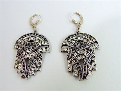 Necklace and Earrings Set by Pierre Bex These earrings are the Strass diamonte art deco earrings which accompany the necklace listed above. The earrings measure 2.25 inches (5.5cm). Condition is excellent.