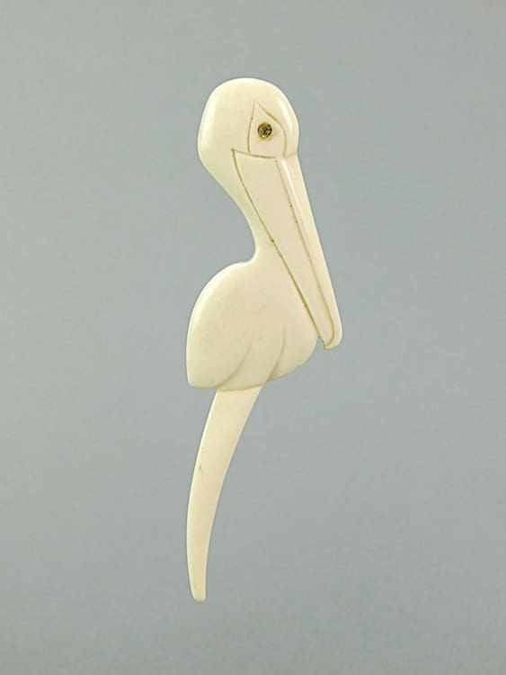 French art deco 1920s phenolic pelican brooch. Fitted with a roll safety clasp.