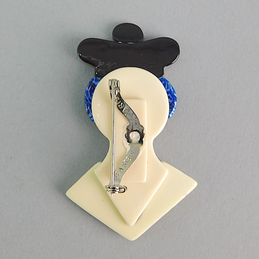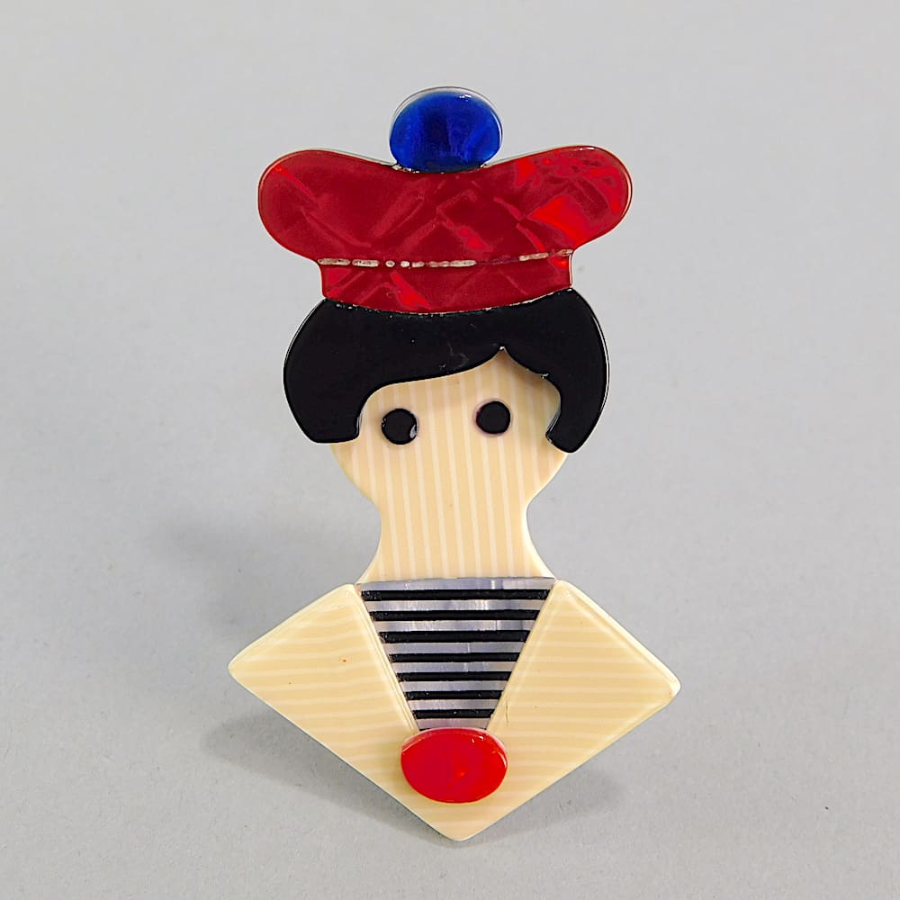 Early first edition Lea Stein French sailor brooch. Signed on the V safety clasp.