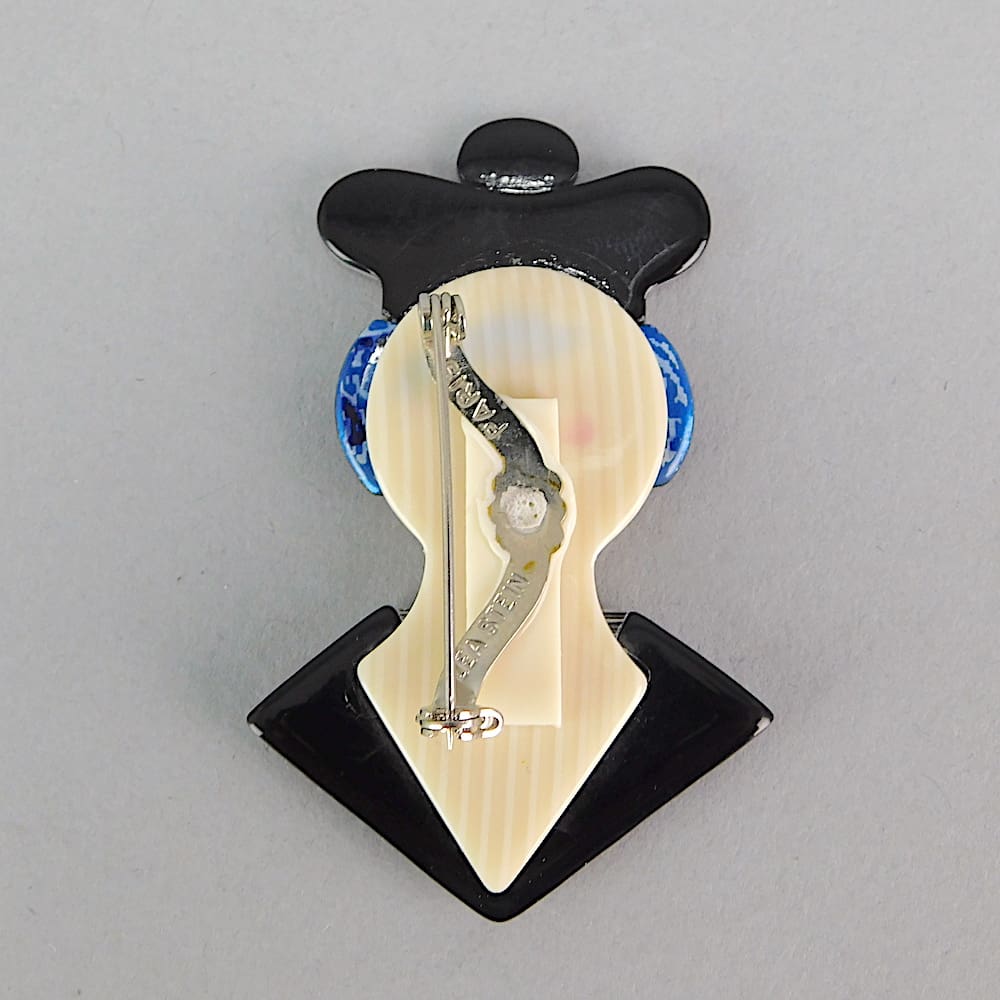 Early first edition Lea Stein French sailor brooch. Signed on the V safety clasp.