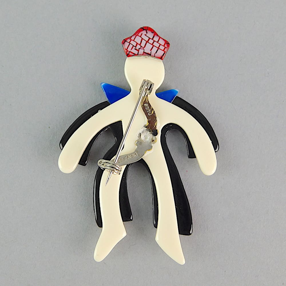 Early first edition Lea Stein French sailor brooch. Signed on the V safety clasp.