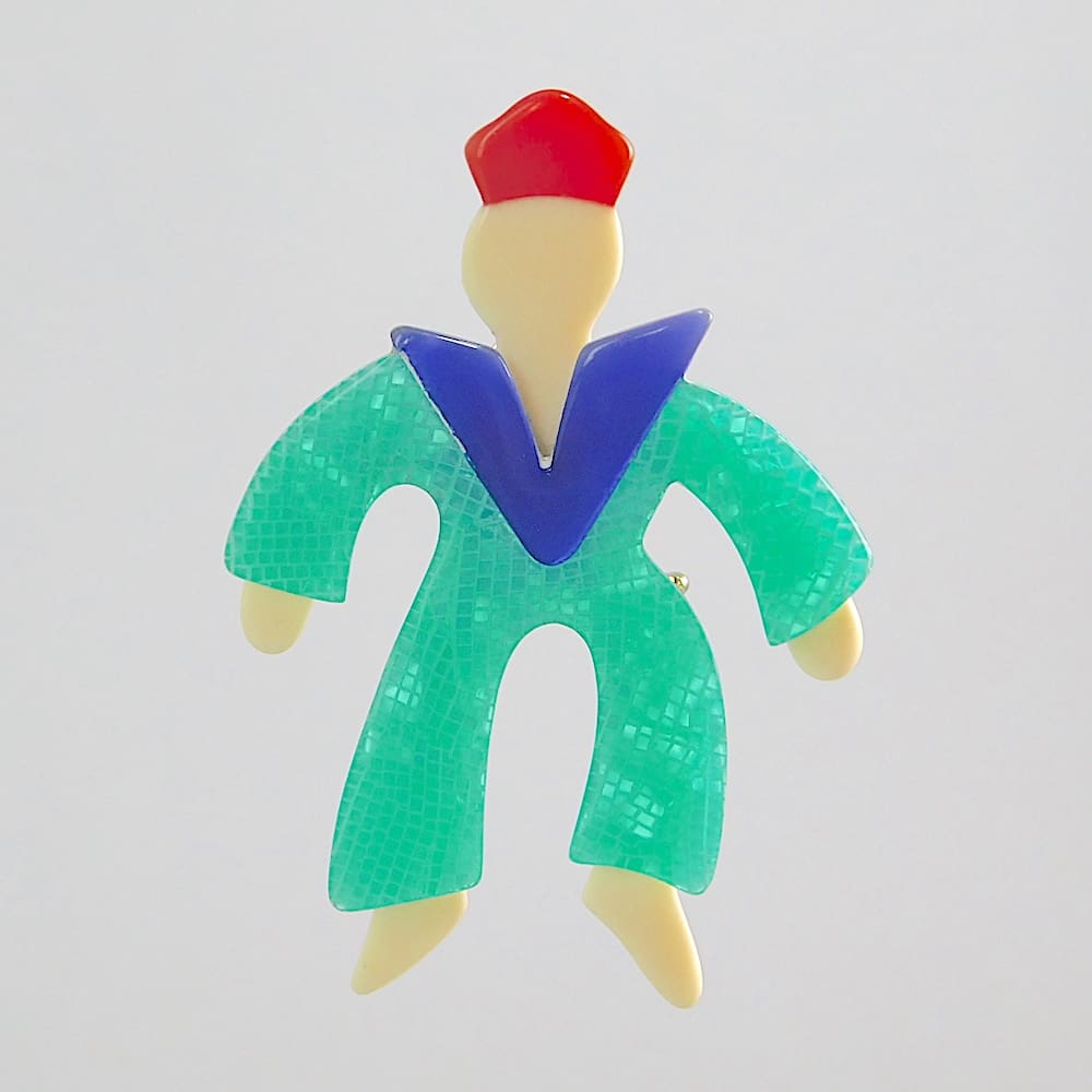 Early first edition full bodied Lea Stein French sailor brooch. Signed on the V safety clasp.