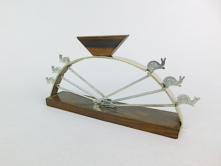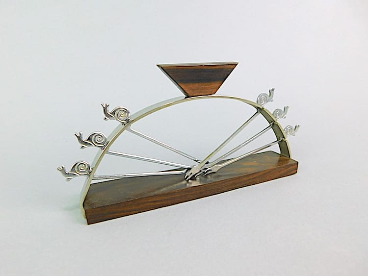 Good quality French metal snails cocktails sticks set with macassar base and handle.
