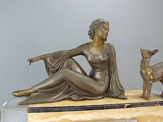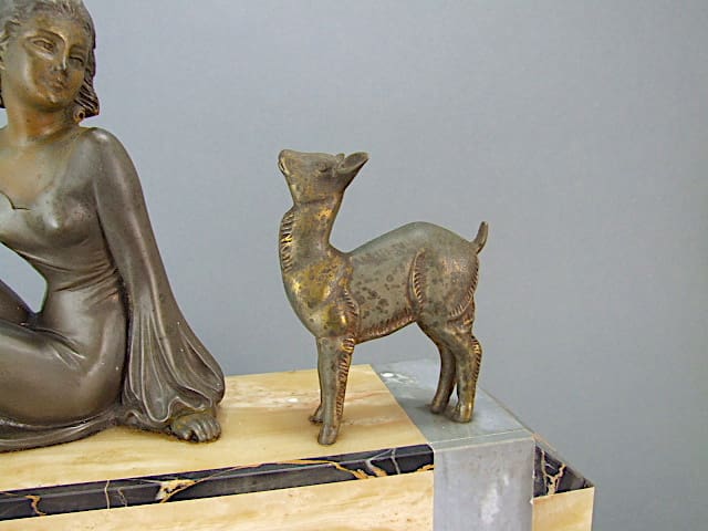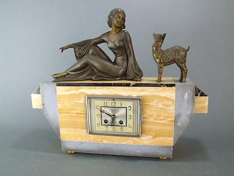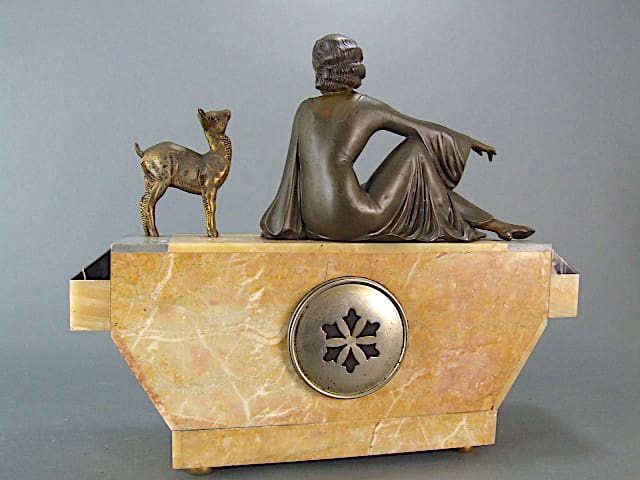 This clock is an unsigned piece probably by Uriano. A pretty lady with a lamb.