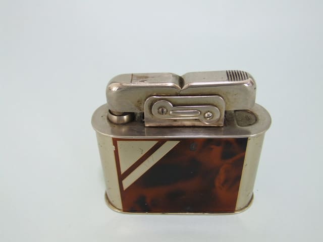 Large brown tortoise shell enamel table lighter.