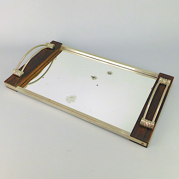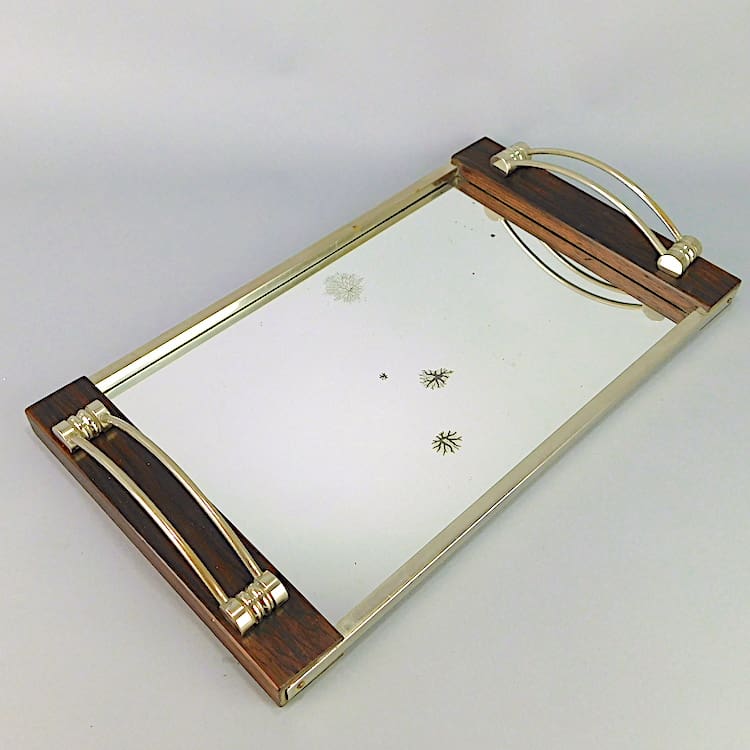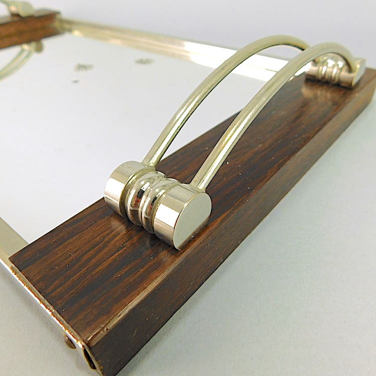 Rosewood and chrome framed mirror base tray with double chrome handles.