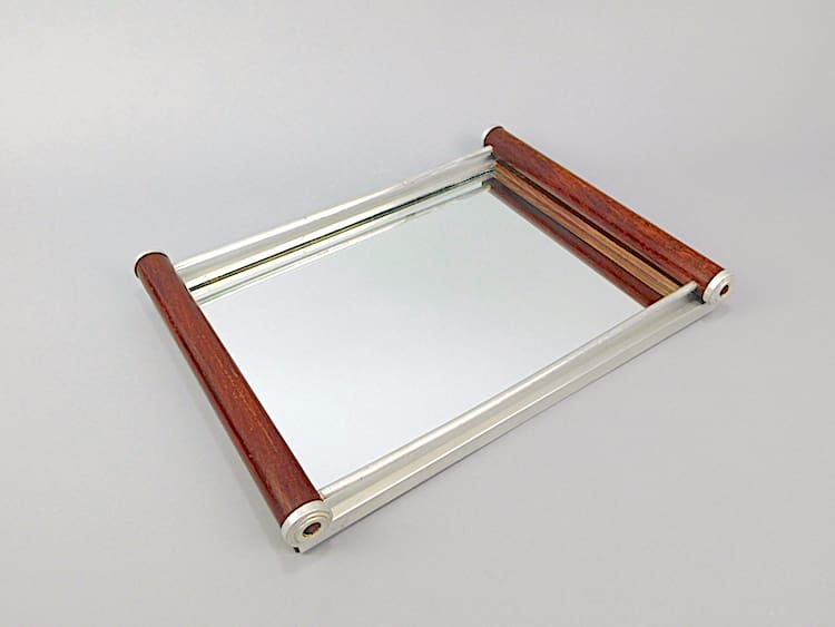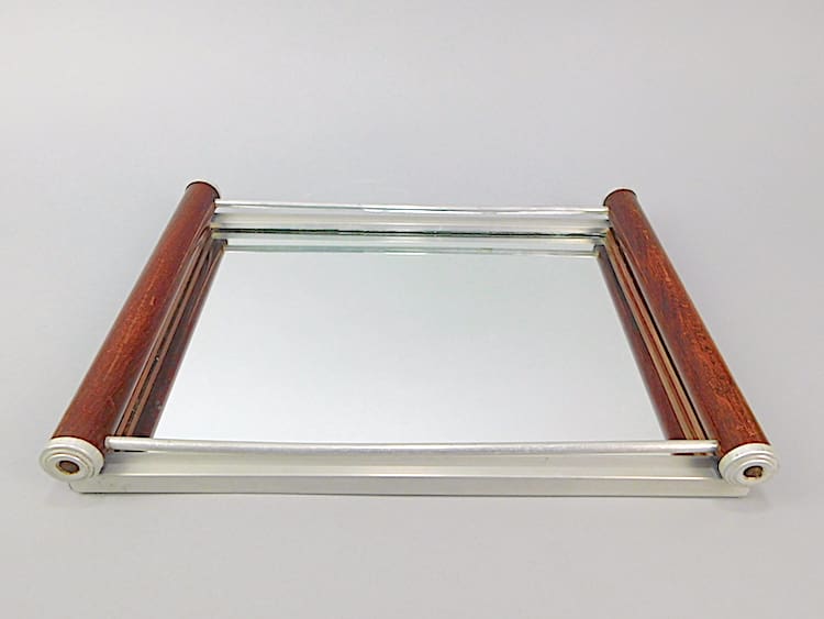 Another French tray this time a wooden roll handled with aluminium end caps and mirror glass base.