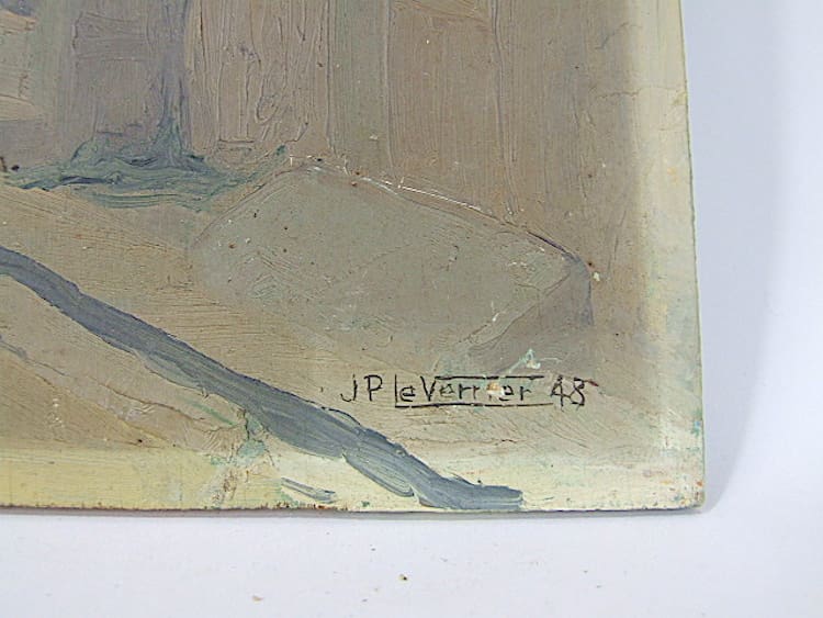 An original oil on board by Jean-Paul Le Verrier, signed and dated J P Le Verrier 1948. This painting has come from the family archives of Max Le Verrier and is a genuine work by the son of Max Le Verrier – Jean-Paul Le Verrier. Unframed.