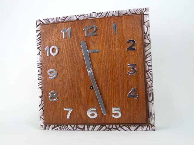 French modernist wall clock by Vedette with chrome hands and numerals, silvered stylised edge detail. With key and in working condition.