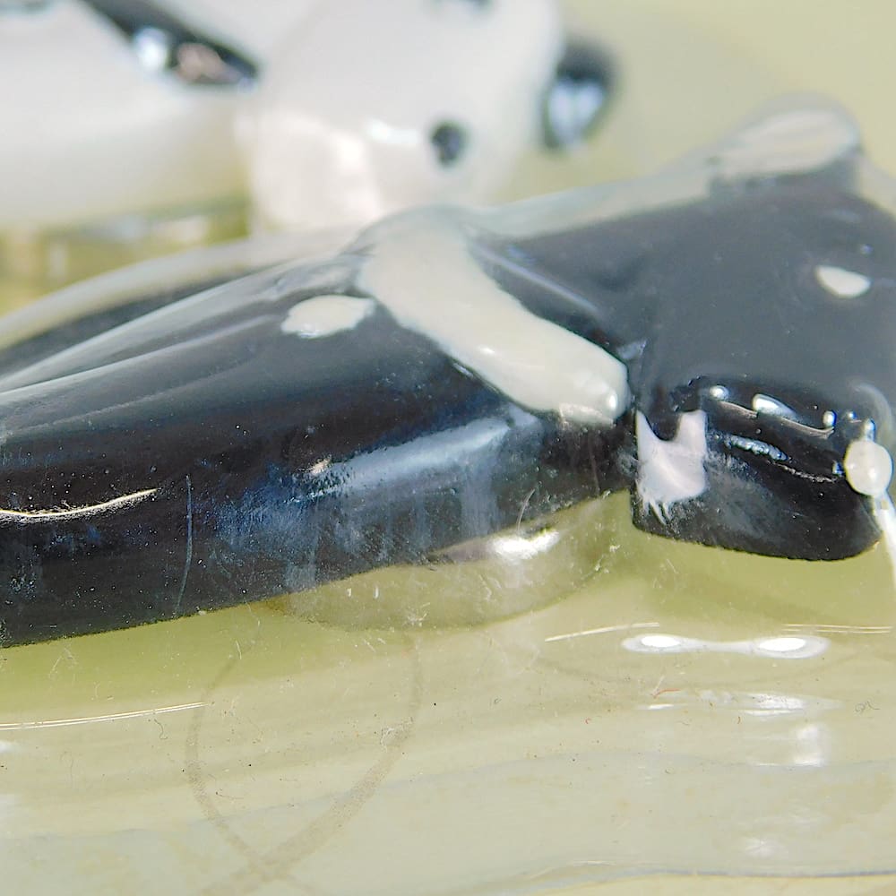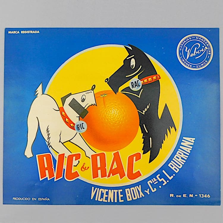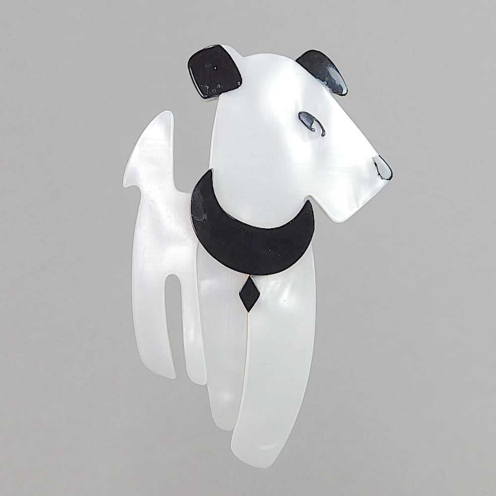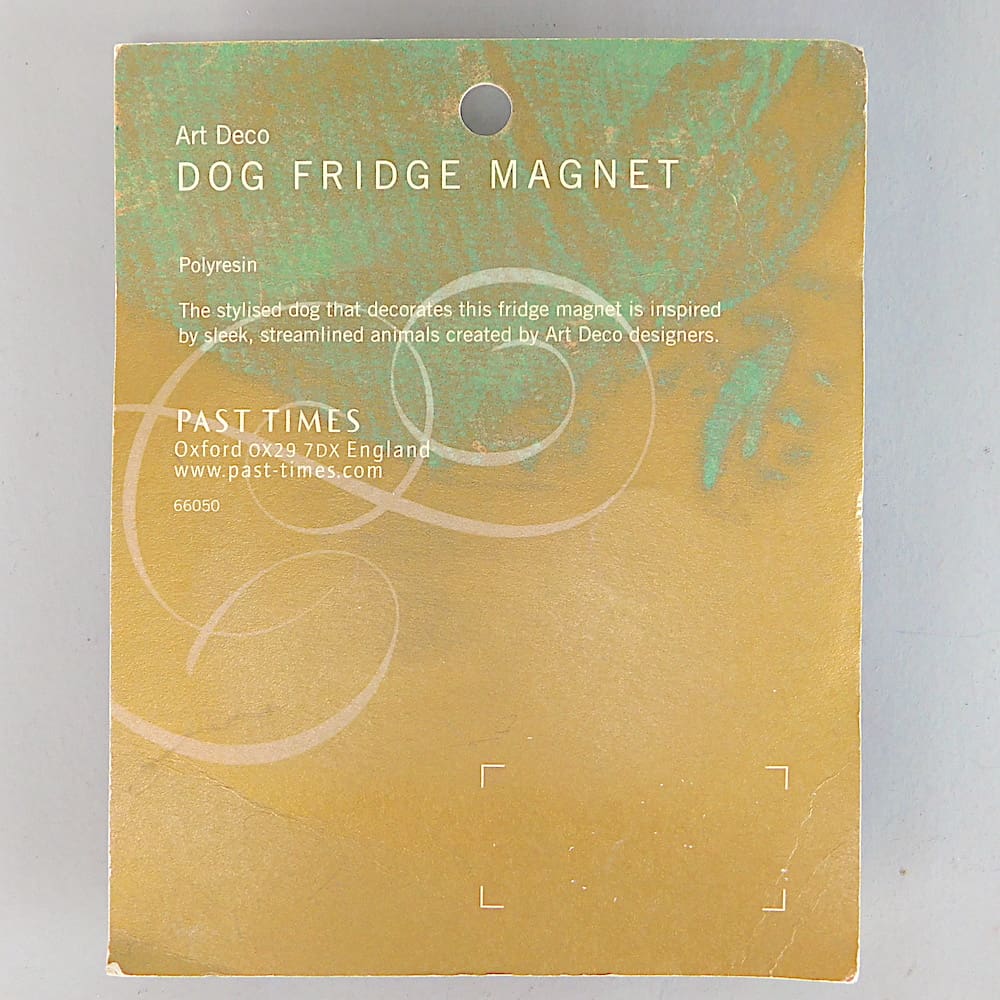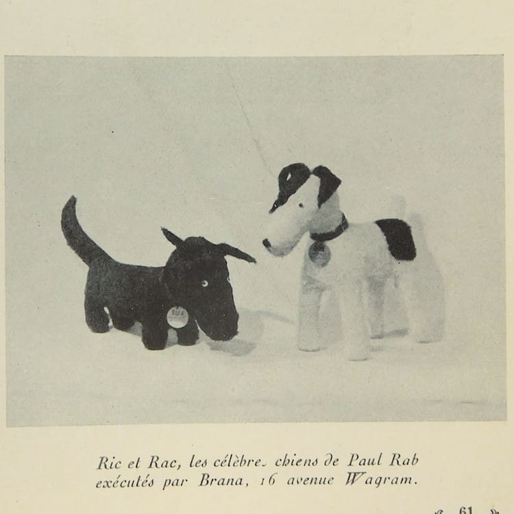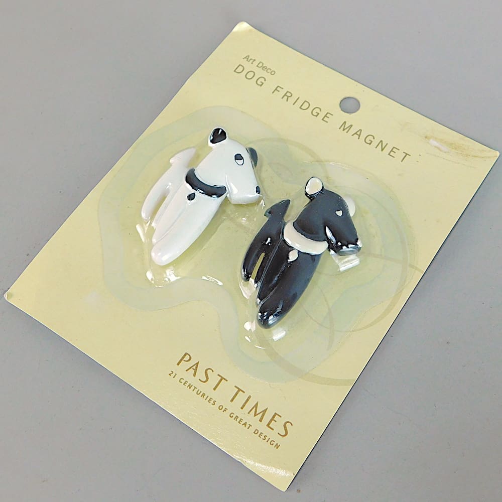 Ric and Rac were a pair of naughty comic strip terrier dogs created by Pol Rab back in the 1920s and have been used in art deco designs by a number of other artists over the decades, most notably by Lea Stein who has a Ric Brooch (shown in the pictures). These magnets are very clearly inspired by the Lea Stein brooches who in turn appears to have been inspired by the comic strip characters. Since their creation, they can be found in a variety of items from photo frames, bookends, lamps, boot polish, car radiator caps, cigarette boxes, posters, cocktail stick sets etc.